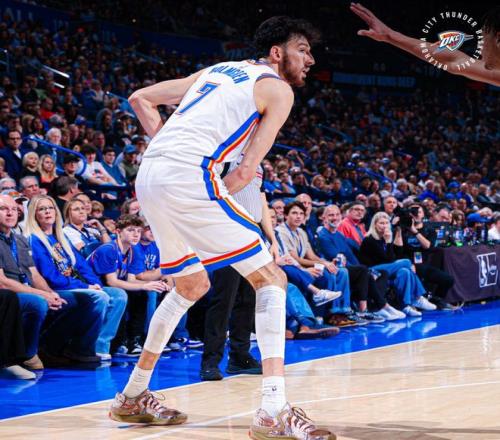 这场比赛雷霆第三巨头霍姆格伦12中5拿到16分13篮板4助攻2盖帽,因为睾丸癌伤停4个月的托皮奇12分钟拿到2分1篮板1助攻,新援麦凯恩13分,可见这支雷霆缺少了双核后攻防效率暴跌。